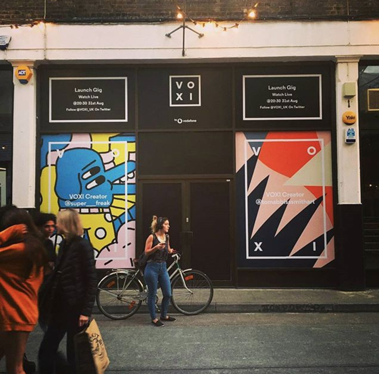 A unique collaboration with emerging UK artists to support the launch of VOXI, Vodafone’s new youth-oriented network.Art direction by Latimer Group and TMW Unlimited.